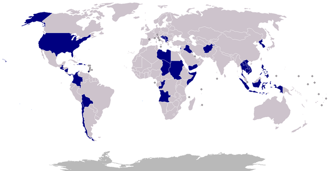 (1950年以來美國領土及其武裝干涉地區,在圖中用深藍色標出)