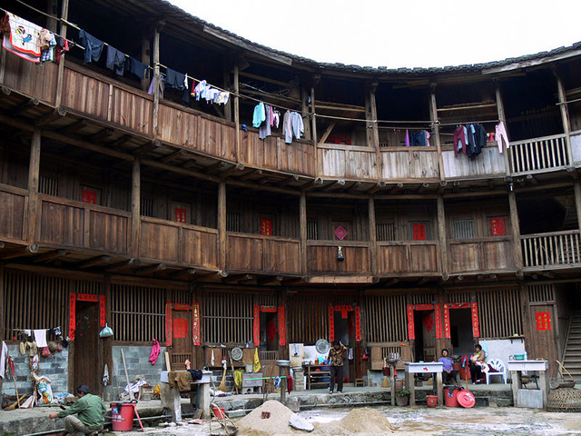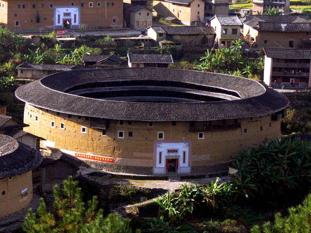 福建土樓包括閩南土樓和一部分客家土樓,總數約三千余。通常是指閩西南獨有約利用不加工的生土,夯築承重生土牆壁所構成的群居和防衛合一的大型樓房,形如天外飛碟,散布在青山綠水之間。主要分佈地區以中國福建西南山區,客家人和閩南人聚居的福建、江西、廣東三省交界地帶,包括以福佬人為主的漳州市,福佬人與客家人蔘半的龍岩市。福建土樓是世界獨一無二的大型民居形式,被稱為中國傳統民居的瑰寶