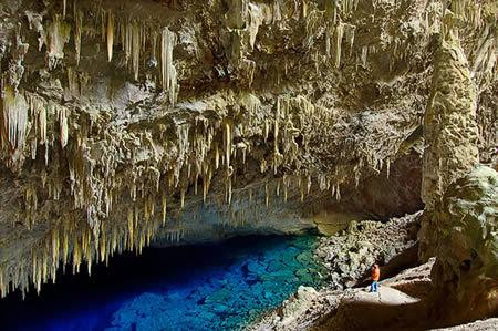 巴西馬托格羅索地區擁有很多神奇的地下湖泊。世界著名的「藍湖洞」就是其中之一。其內部的鐘乳石、石筍數不勝數,更有美不勝收的遼闊無邊的藍湖令人讚歎不已。藍湖各種各樣的地質風貌令人叫絕,內湖深藍色的水更使遊客留戀忘返。