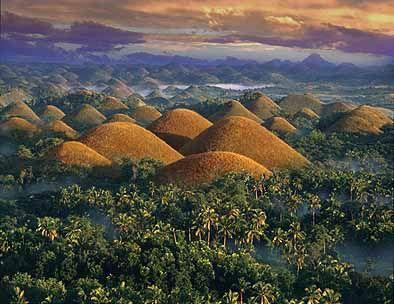 巧克力山由1268個面積相同、幾近完美的圓錐形山丘組成,佔地達50平方公里。巧克力山的形成有多種原因。可能是由於石灰岩風化、亞海洋火山或海床的隆起。近期理論認為,這是一個古老活火山的自我毀滅,它噴出來的大塊岩石四散,後來覆蓋上了石灰石,隨後從海床中湧出。